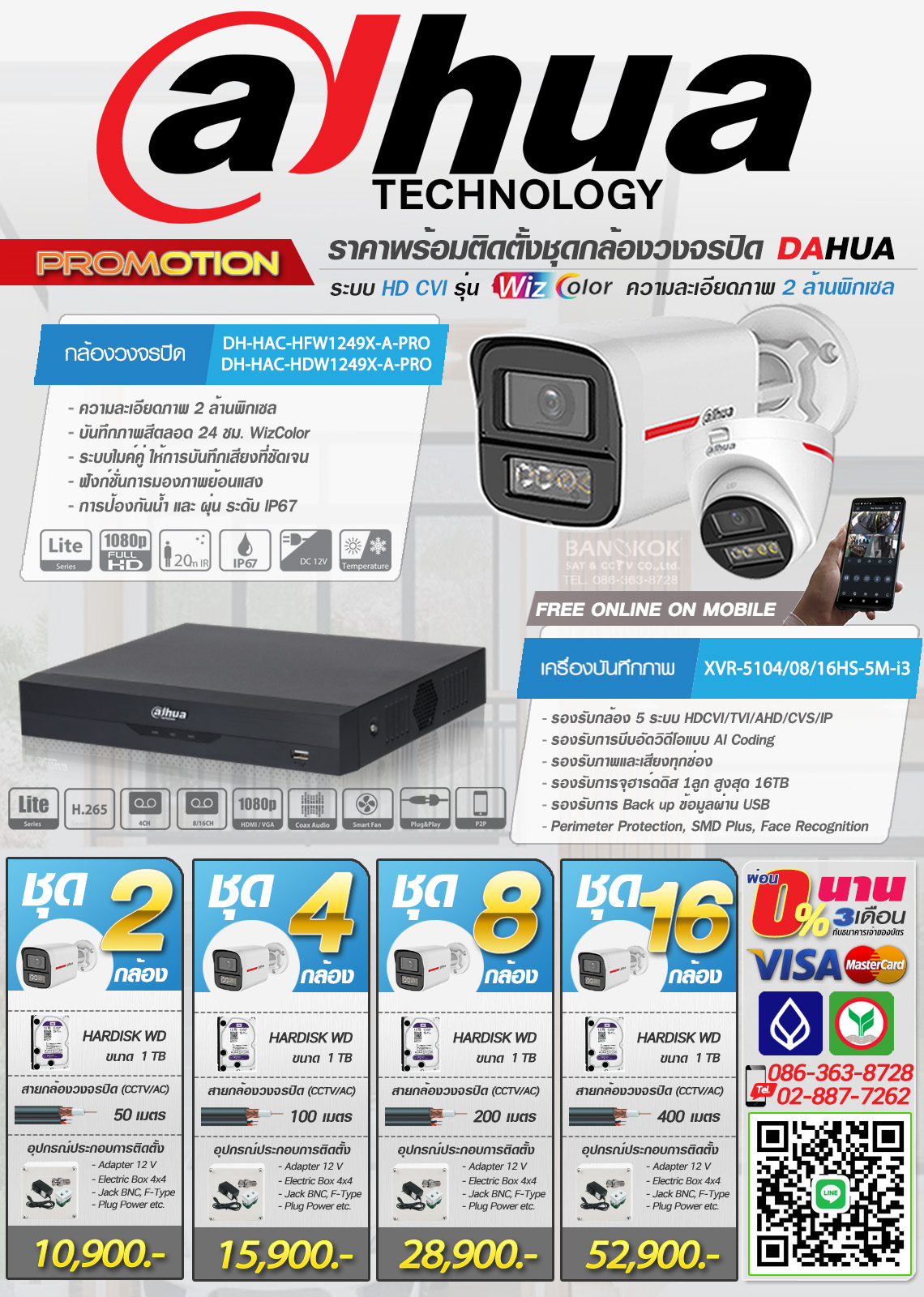 โปรโมชั่น ติดตั้งกล้องวงจรปิด Dahua รุ่น WizColor (ภาพสี 24 ชม.) + Mic. (บันทึกเสียงได้) ความละเอียดภาพ 2 ล้านพิกเซล